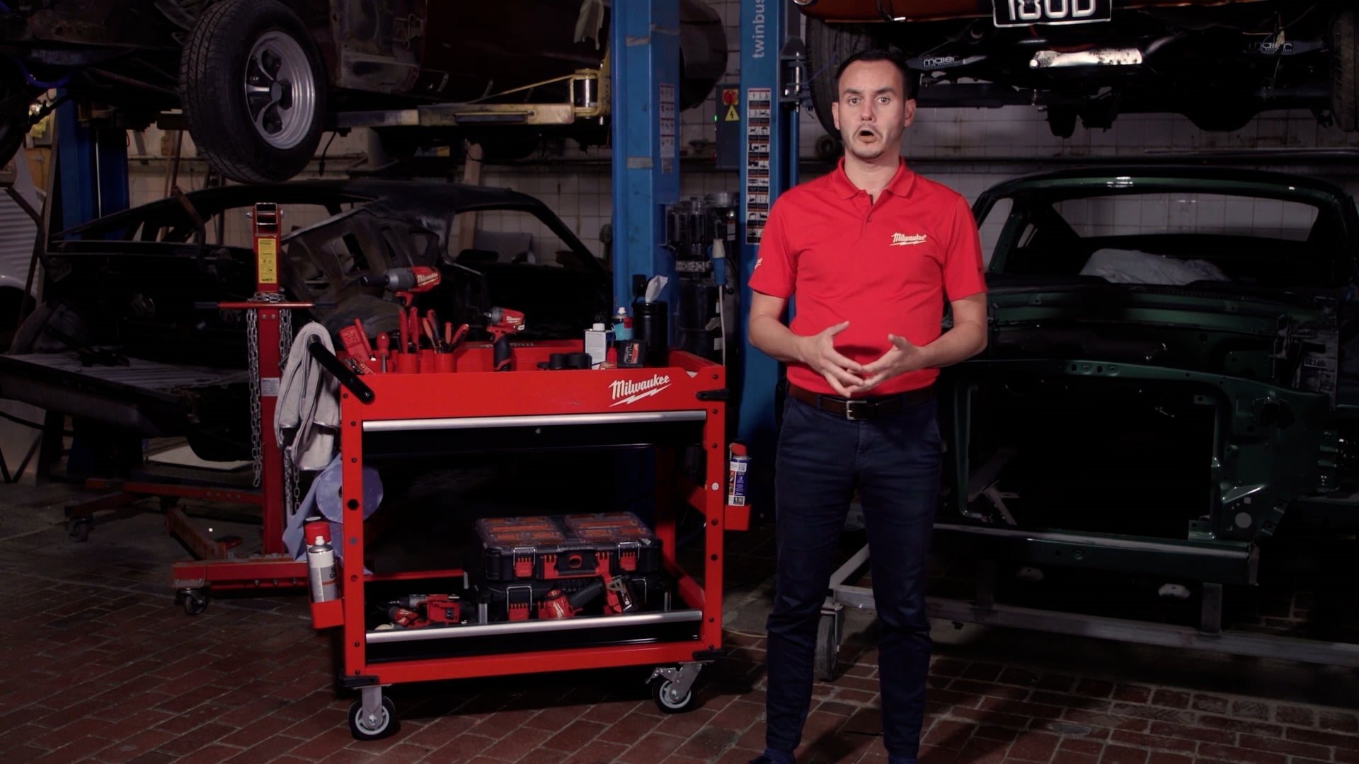 • La barre d'alimentation magnétique permet de charger les batteries directement sur le chariot.