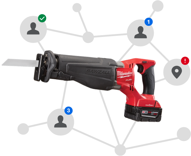 Grâce au réseau communautaire Bluetooth®, à la lecture de code-barres ou à la géolocalisation, il sera facile de paramétrer et gérer vos outils. Obtenez une gestion et une visibilité complètes de votre inventaire sur vos chantiers, au dépôt ou dans la camionnette d'une équipe. Les alertes en temps réel vous permettent d’anticiper la maintenance de vos outils et ainsi vous évite une immobilisation trop longue.